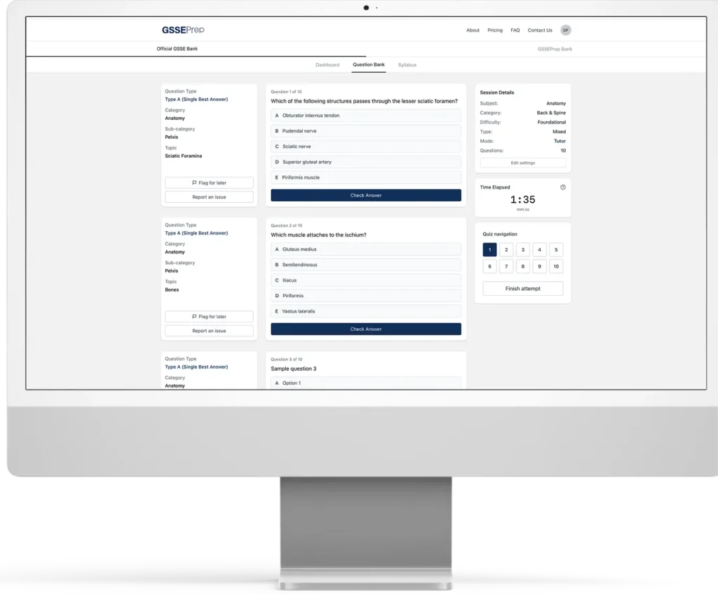 GSSEPrep is an online study platform designed specifically for junior doctors preparing for the General Surgical Sciences Examination (GSSE). The platform uses a syllabus-first structure to support efficient, focused exam preparation.